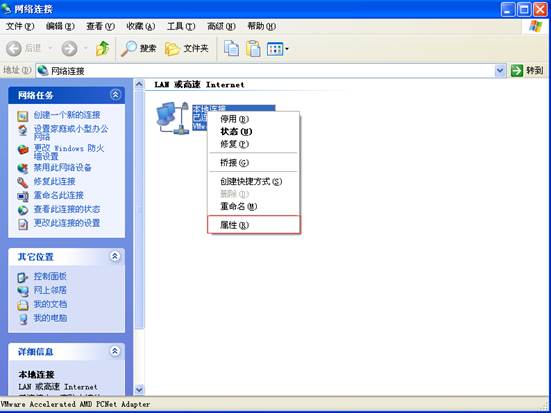 2)打开后,在本地连接上面点击右键――属性。