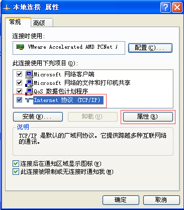 3)选择Internet协议(TCP/IP),点击属性按钮。