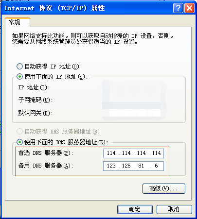 4)上图中,如果DNS服务器地址不是211.67.191.16,说明DNS服务器地址已被篡改,请将“首选DNS服务器”更改为校内DNS服务器地址211.67.191.16(备用为空),然后点击确定。最后在本地连接上面点击鼠标右键,选择修复。