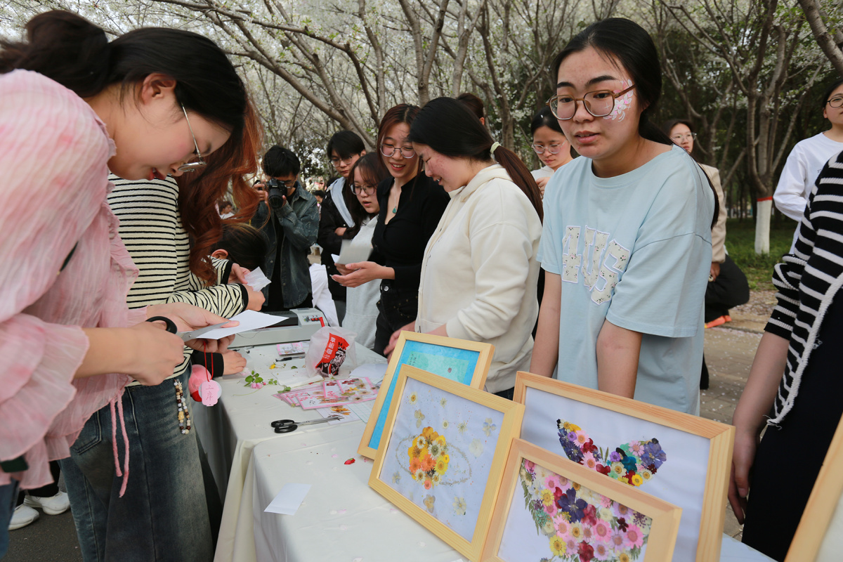 “樱间拾趣”创意手作、“樱漫溢彩”妆容设计、“樱香本草”中药集市等活动以樱花作引,由各学院学生结合专业特点,制作樱花树脂、樱花书签、樱花美食等特色产品,彩绘樱花妆容、制作中药香囊,运用3D打印技术现场制作樱花模型,在提升活动参与度的同时,充分展现大学生的专业基础、实践能力和综合素质。