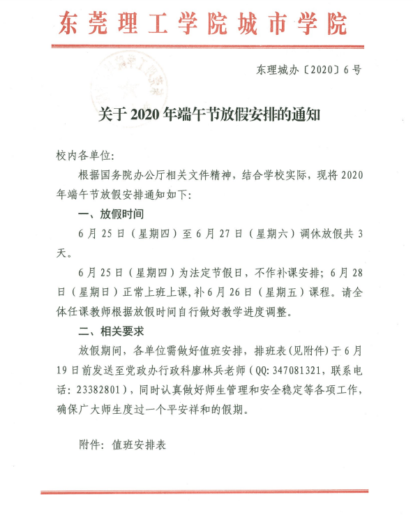 关于2020年端午节放假安排的通知