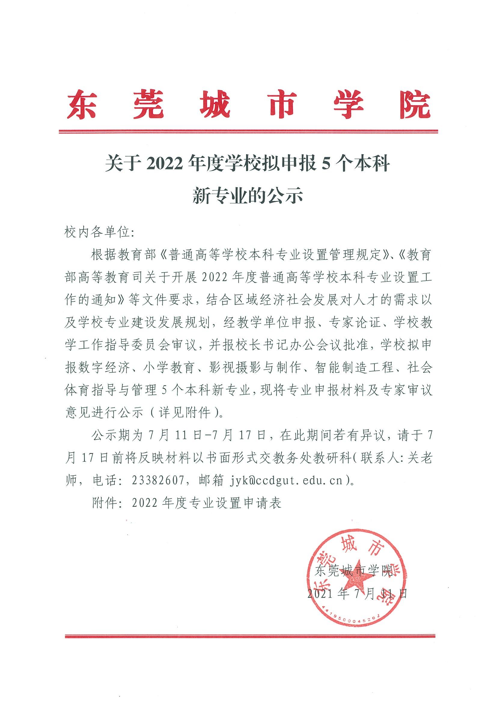 关于2022年度学校拟申报5个本科新专业的公示
