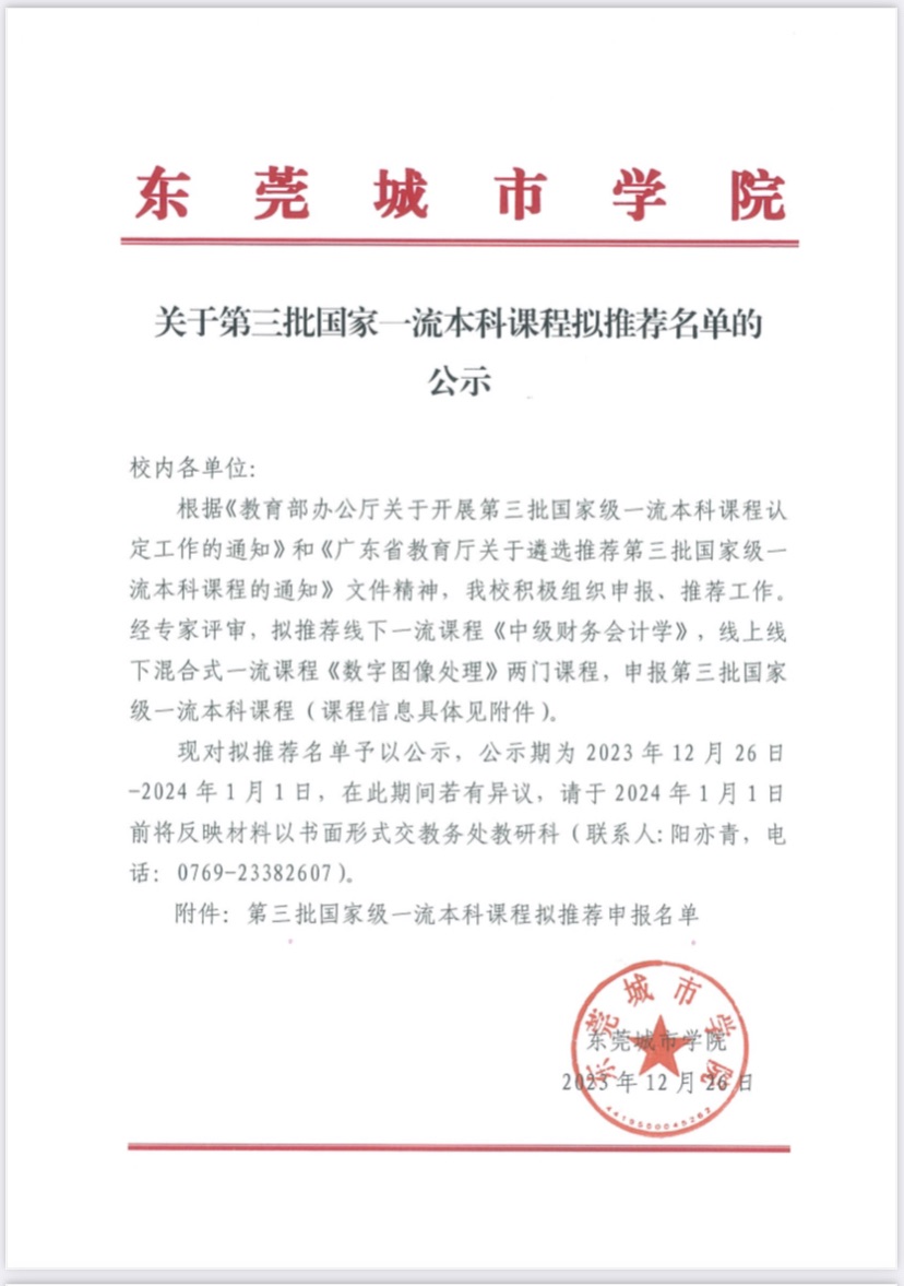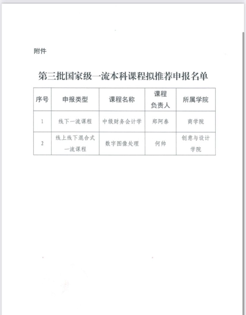 关于2023年度省一流本科课程拟推荐申报名单的公示