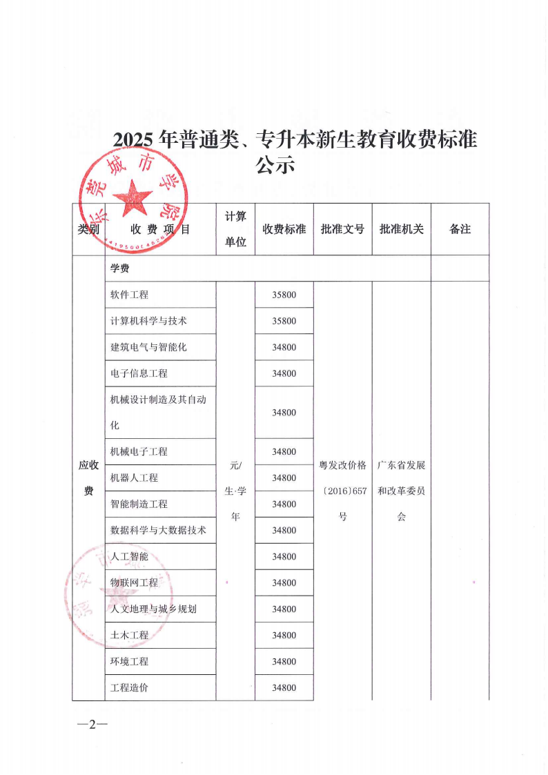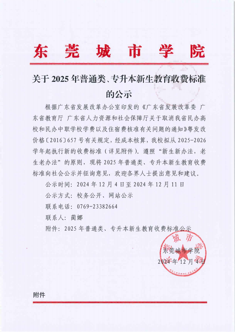 关于2025年普通类、专升本新生教育收费标准的公示