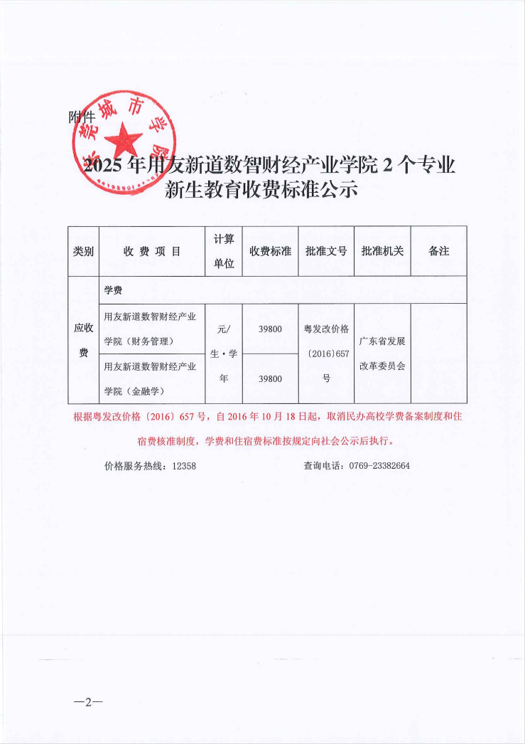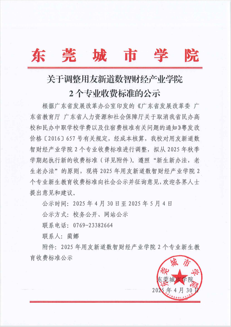 关于调整用友新道数智财经产业学院 2个专业收费标准的公示